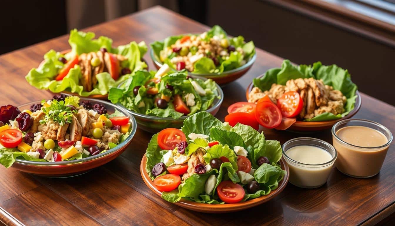 This Charbroiled Chicken Salad is a top pick. It has juicy grilled chicken on fresh greens with colorful veggies. This mix gives you a good dose of protein and fiber. It’s perfect for those who want to eat well.